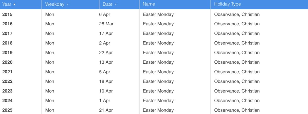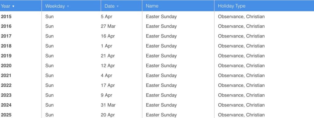 Most Christians refer to the week before Easter as “Holy Week”, which contains the days of the Easter Triduum, including Maundy Thursday, commemorating the Maundy and Last Supper, as well as Good Friday, commemorating the crucifixion and death of Jesus.In Western Christianity, Eastertide, or the Easter Season, begins on Easter Sunday and lasts seven weeks, ending with the coming of the 50th day, Pentecost Sunday. In Eastern Christianity, the season of Pascha begins on Pascha and ends with the coming of the 40th day, the Feast of the Ascension.